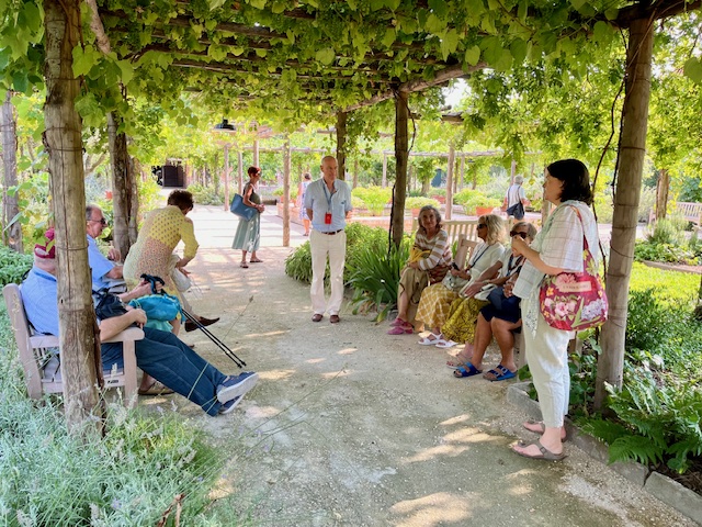 Il pomeriggio di sabato 5 luglio è iniziato con la vista alla mostra, organizzata a San Giorgio presso la Fondazione Cini, del progetto di Jean Nouvel, ormai in fase di completamento, della nuova sede della Fondazione Cartier a Parigi. Si è passati poi alle Stanze del Vetro per un’interessante visita guidata alla mostra “1932-1942 Il vetro di Murano e la Biennale di Venezia”. Al termine, il gruppo si è spostato alla Giudecca per la visita guidata agli Orti/Giardini della chiesa del Santissimo Redentore. L’intervento, realizzato dalla Venice Gardens Foundation e conclusosi alla fine del 2024, è un eccezionale esempio di recupero di un’area fortemente danneggiata dall’acqua alta del 2019. La ricostruzione di un bellissimo orto/giardino con una atmosfera mistica e meditativa e un affaccio incantevole sulla laguna di Venezia. Per una parte del gruppo la giornata si è conclusa con un’ottima cena di pesce a Venezia.